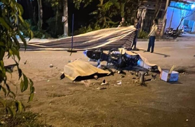 Hai xe máy "kẹp" ba đâm nhau trong đêm, hai người chết