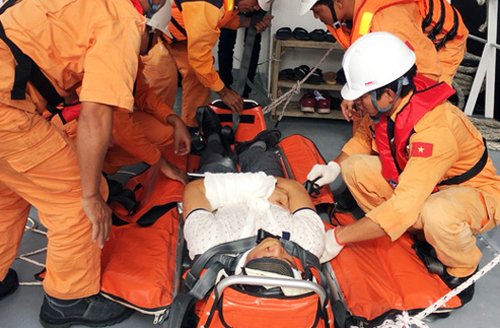 Bị đa chấn thương, hôn mê do trượt chân ngã trên tàu, hai thuyền viên nước ngoài được nhà chức trách đưa vào bờ cấp cứu.