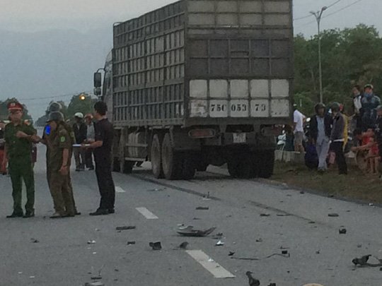 Hai thanh niên đi trên xe gắn máy lưu thông về biển Cảnh Dương thì xảy ra va chạm với xe tải chạy hướng ngược lại khiến cả 2 đều tử vong tại chỗ.