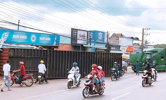 Thùng container trên xe đầu kéo văng xuống đường trúng hai xe máy khiến hai vợ chồng thiệt mạng, nam thanh niên bị thương.