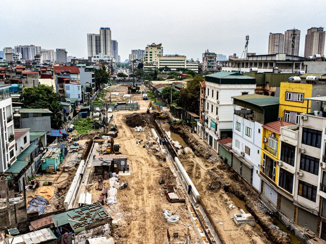 Công nhân của nhà thầu đang khẩn trương triển khai các hạng mục dự án xây dựng hầm chui Kim Đồng - Giải Phóng (quận Hoàng Mai) để bảo đảm có thể đưa vào vận hành trong năm 2025.