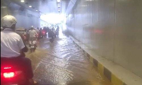 Hầm chui Điện Biên Phủ - Nguyễn Tri Phương (quận Thanh Khê, Đà Nẵng) mới đưa vào sử dụng cuối năm 2017 đã gặp sự cố ngập nước, dù trời không mưa.