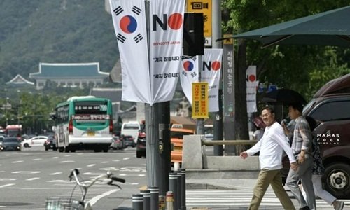 Chính quyền quận Jung-gu ở Seoul hôm nay cho treo hơn 1.000 biểu ngữ chống Nhật khi căng thẳng thương mại song phương leo thang.