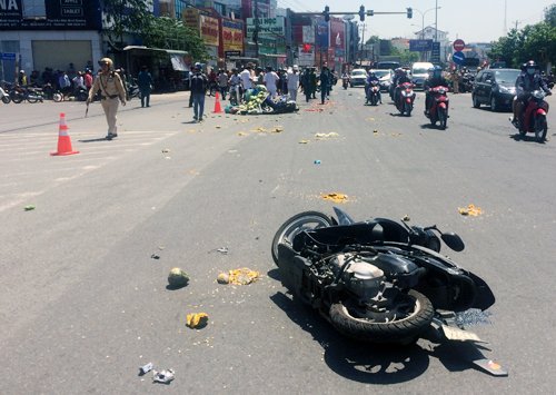 Ôtô khách húc văng hàng loạt xe máy dừng đèn đỏ ở Bình Dương