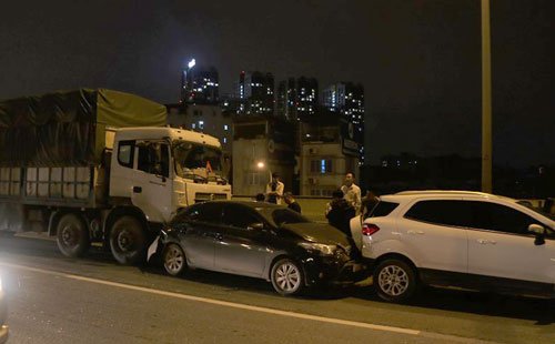 Bốn xe tông liên hoàn, đường trên cao tắc kéo dài lúc nửa đêm