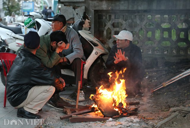 Cái rét cắt da thịt khiến người dân Thủ đô phải tìm mọi cách để giữ ấm cho cơ thể, nhiều người phải đốt củi bên đường để sưởi ấm, quán nước cũng bố trí bếp củi cho khách hơ, tài xế xe ôm sắm hẳn tấm chắn gió cho cả mình và khách...