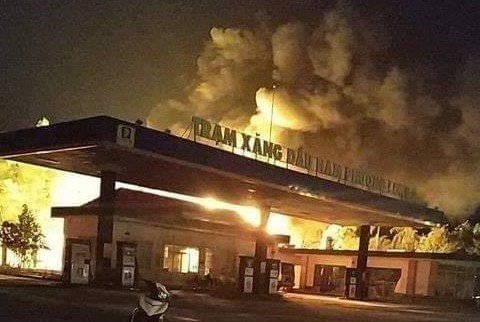 Ngọn lửa bốc cháy dữ dội từ xe bồn chở xăng rồi cháy lan sang các xe bồn khác ở cây xăng Nam Phương Phong, Đồng Nai.