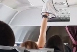 Nữ hành khách hong khô nội y trước quạt thông gió máy bay