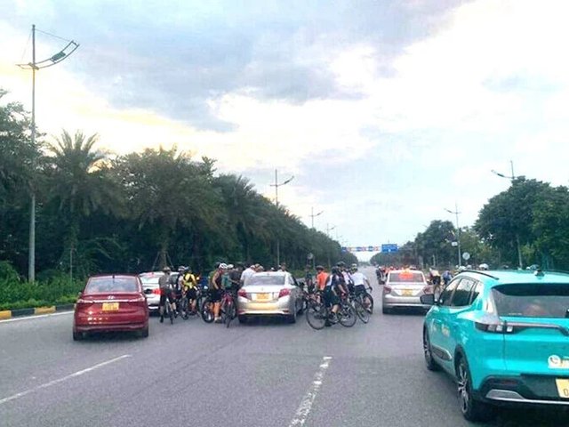 Không chỉ đạp xe vào đường dành riêng cho ô tô, khi lái xe ô tô xin nhường đường, nhóm người đi xe đạp thể thao còn quây tài xế, buông lời chửi bới, đe doạ.