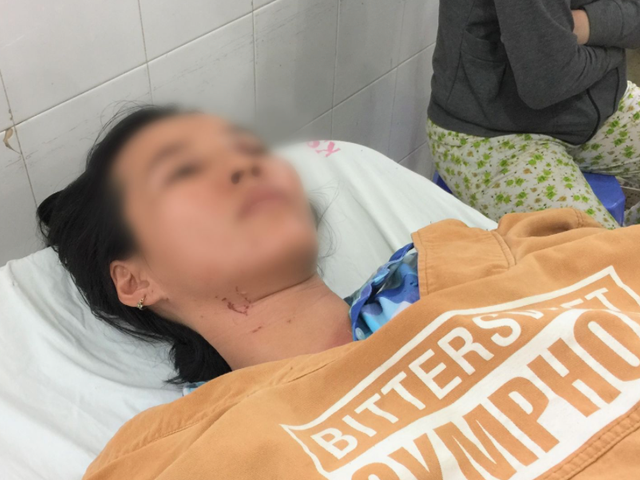 Đang được cấp cứu tại Bệnh viện đa khoa tỉnh Tây Ninh với nhiều vết thương trên mặt, cổ, mắt, chị M. vẫn rùng mình khi nhớ cảnh bị chồng dìm xuống nước.