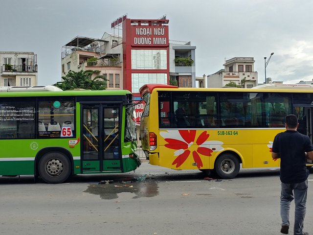 Hàng chục người hoảng loạn trong xe buýt bị tông liên hoàn