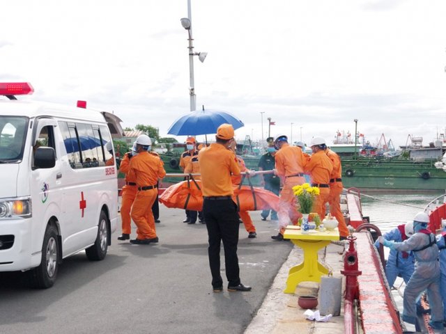 Lúc 14h35 chiều 2/10, Bộ Chỉ huy Bộ đội Biên phòng (BĐBP) tỉnh Bà Rịa - Vũng Tàu đã tiến hành các thủ tục tiếp nhận 13 thi thể thuyền viên tàu Wu Zhou 8 bị nạn trên biển được đưa vào bờ...