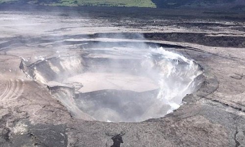 Hồ nước xanh ở đáy miệng núi lửa hoạt động mạnh nhất Hawaii
