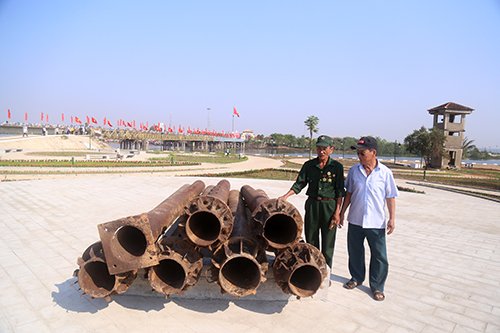 Nhiều hạng mục ở bờ nam di tích quốc gia đặc biệt Hiền Lương - Bến Hải được phục dựng như cột cờ, dàn loa phóng thanh, đồn cảnh sát…