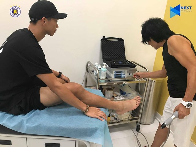 Ngay sau khi gặp phải chấn thương trong trận đấu với SHB Đà Nẵng, Đoàn Văn Hậu được đưa tới gặp thần y Hàn Quốc để điều trị.