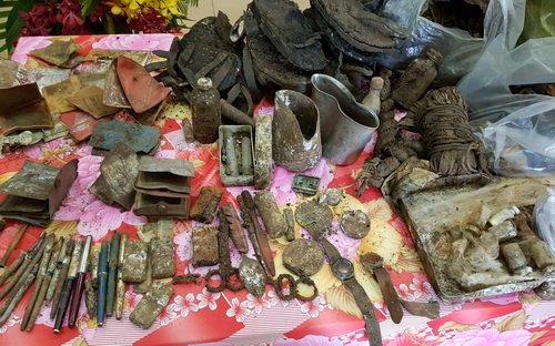 Trong nhiều di vật dưới hố chôn 13 liệt sĩ, lực lượng tìm kiếm phát hiện bức chân dung một chiến sĩ khá nguyên vẹn.