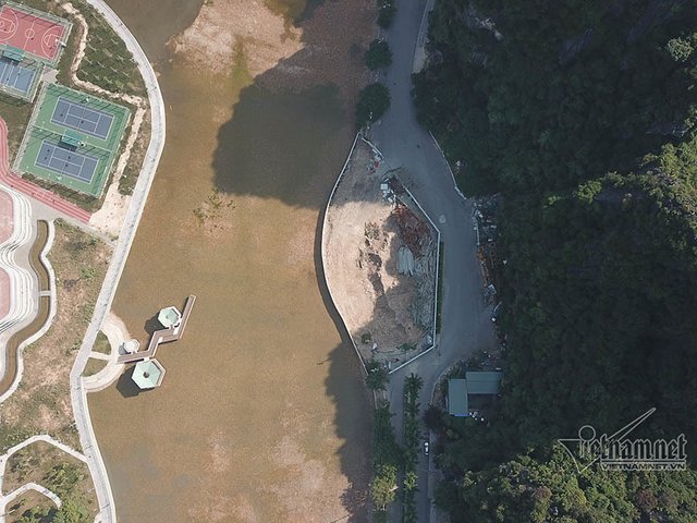 Hồ Cô Tiên (phường Bạch Đằng, TP Hạ Long, Quảng Ninh) bị lấn để xây khách sạn.