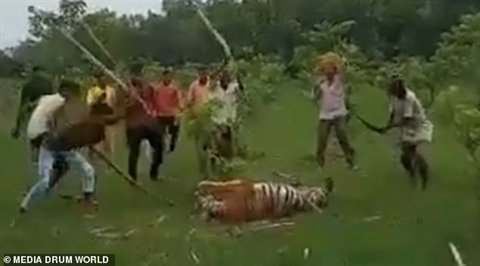 Hổ dữ bị dân làng quây, đập chết trong bất lực