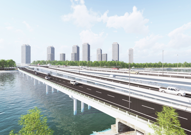 Hai cầu đi dưới đường Vành đai 3 trên cao có tổng chiều dài trên 500 m, dự kiến khởi công cuối năm 2019, nhằm khắc phục tình trạng ách tắc của giao thông khu vực này.