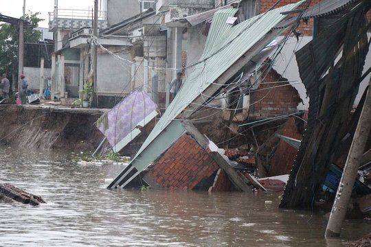 34 hộ dân tại khu vực Thới Lợi (phường Thới An, quận Ô Môn, TP Cần Thơ) bị ảnh hưởng bởi sạt lở được ngành chức năng hỗ trợ từ 10-15 triệu đồng/hộ.