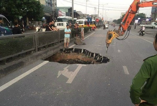 Trưa 22.10, trên quốc lộ 18 đoạn qua phường Cẩm Sơn, TP.Cẩm Phả xuất hiện một hố tử thần có đường kính gần 2m khiến người dân quanh vùng và người tham gia giao thông sợ hãi.