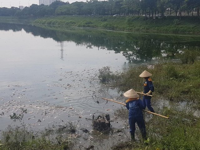 Mỗi ngày, Xí nghiệp quản lý cụm công trình đầu mối Yên Sở phải bố trí 20 công nhân túc trực vớt cá chết để mang đi xử lý, số cá chết chủ yếu là cá rô phi đơn tính.