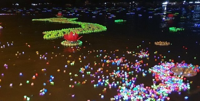 Các chuyên gia cho rằng thả hơn 30.000 đèn hoa đăng xuống biển thể hiện sự khoa trương, lãng phí, không chỉ đầu độc thiên nhiên mà còn làm mất ý nghĩa tâm linh.
