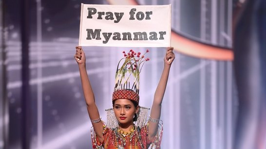 Hoa hậu Myanmar giơ thông điệp cầu nguyện cho đất nước