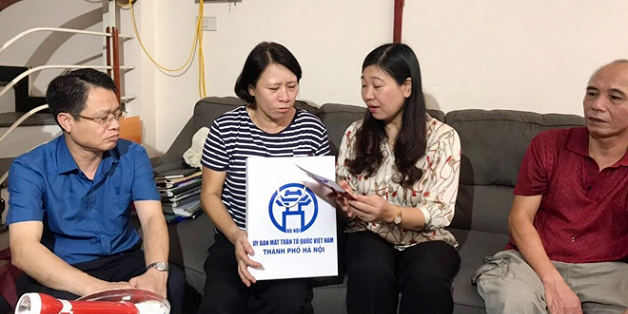 Chủ tịch Ủy ban MTTQ thành phố Nguyễn Lan Hương cùng đoàn công tác đến thăm, tìm hiểu đời sống nhân dân gần khu Rạng Đông vào ngày 7/9.