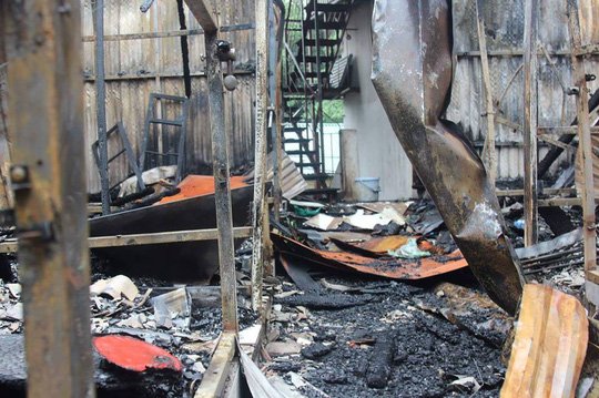 Dãy nhà trọ cho người nghèo bị thiêu rụi, nhiều cửa hàng cháy nham nhở và khu vực này vẫn đang được phong tỏa để điều tra.