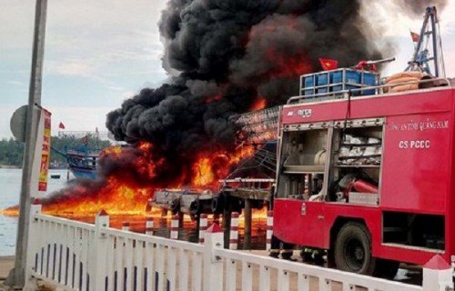 Một tàu chụp mực bất ngờ bốc cháy khi đang neo đậu tại cảng Kỳ Hà. Nguyên nhân ban đầu có thể là do chập điện trong khoang máy.