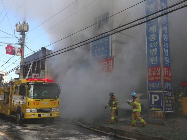 Ngọn lửa bùng phát ở phòng cấp cứu đã khiến nhiều bệnh nhân nằm viện không kịp trở tay. Ít nhất đã có 33 người thiệt mạng trong vụ cháy sáng nay ở Miryang.