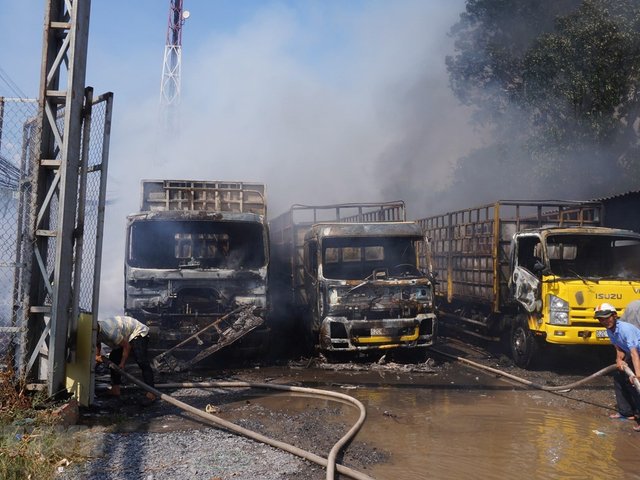 Long An: Cháy lớn ở vựa phế liệu, thiêu rụi ba xe tải