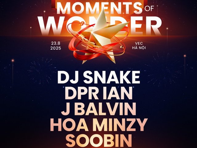 Ngày 23/8, tại Trung tâm Triển lãm Việt Nam (đường Cầu Tứ Liên, xã Đông Anh, Hà Nội), đại nhạc hội “Moments of Wonder” - sự kiện âm nhạc có quy mô lớn nhất từ trước đến nay sẽ chính thức diễn ra. Chương trình quy tụ dàn nghệ sĩ đình đám quốc tế và Việt Nam như DJ Snake, J Balvin, The Kid LAROI, DPR IAN, Soobin và Hòa Minzy. Đây là sự kiện đặc biệt nằm trong chuỗi hoạt động kỷ niệm 80 năm Quốc khánh, đồng thời khẳng định vị thế Việt Nam là điểm đến lễ hội và giải trí hàng đầu khu vực.