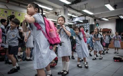 Học sinh Hong Kong oằn lưng đeo cặp nặng 5 kg tới trường