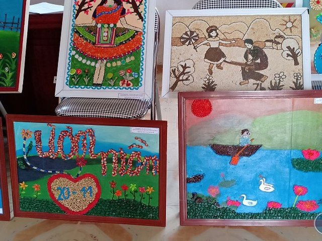 Lung linh những bức tranh từ hạt ngô, hạt gạo của học sinh vùng cao