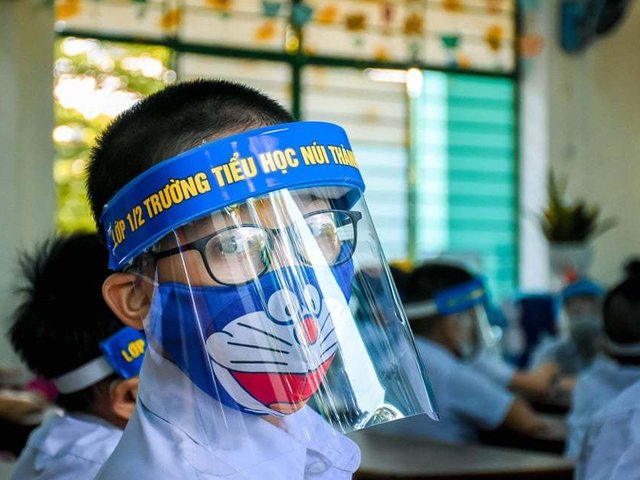 Đeo tấm chắn giọt bắn khi ngồi học: Thương hay hại con?