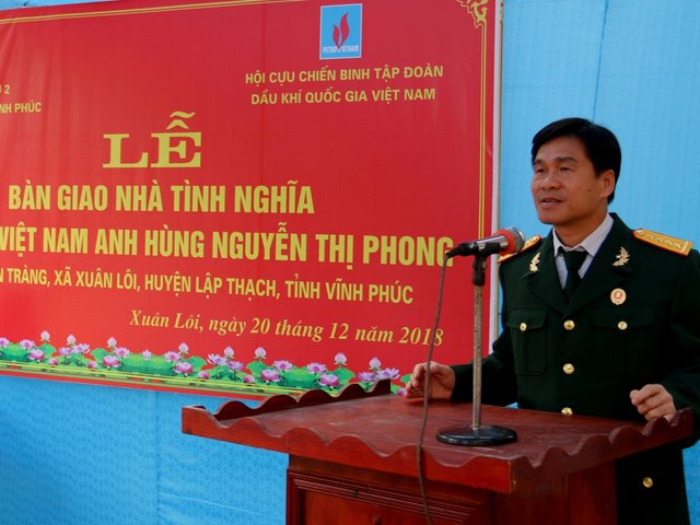 <b>Nhân dịp kỷ niệm 74 năm Ngày Thành lập Quân đội nhân dân Việt Nam (22/12/1944 - 22/12/2018) và 29 năm Ngày hội Quốc phòng toàn dân (22/12/1989 - 22/12/2018). Ngày 20/12, Hội CCB Tập đoàn Dầu khí Quốc gia Việt Nam (Hội CCB Tập đoàn) phối hợp Bộ Chỉ huy Quân sự tỉnh Vĩnh Phúc đã tổ chức lễ khánh thành và bàn giao nhà “Nghĩa tình đồng đội” cho gia đình Mẹ Việt Nam Anh hùng Nguyễn Thị Phong (Lập Thạch, Vĩnh Phúc).</b>