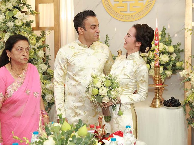 Chồng doanh nhân Ấn Độ đi cùng dàn bê tráp đến hỏi cưới Võ Hạ Trâm