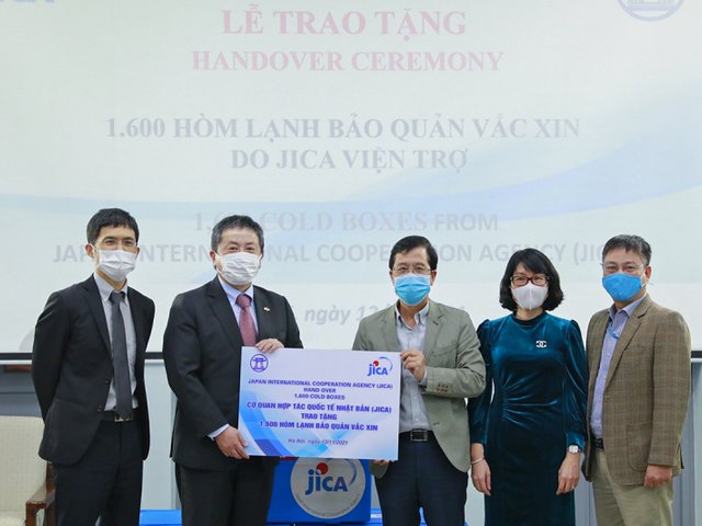 Ngày 12 /11, JICA đã tiến hành trao tặng 1.600 hòm lạnh bảo quản vaccine kèm thiết bị theo dõi nhiệt độ cho Viện Vệ sinh Dịch tễ Trung ương (NIHE). Gói hỗ trợ này được mua thông qua Quỹ Nhi đồng Liên Hợp Quốc (UNICEF) có trị giá 100 triệu yên Nhật (khoảng 20 tỷ đồng).