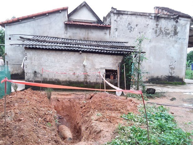 Quả bom nặng hơn 230 kg còn sót lại sau chiến tranh, ở độ sâu chỉ hơn 50 cm trong vườn nhà một người dân. Hàng chục năm qua chủ nhà luôn cuốc đất làm vườn trên quả bom, rất may quả bom không phát nổ và được phát hiện xử lý.