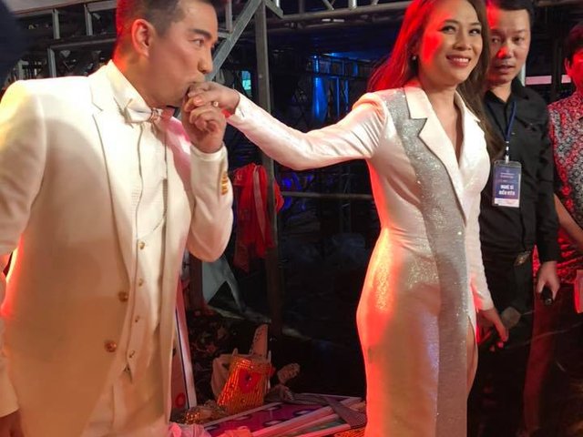 Đàm Vĩnh Hưng tình tứ hôn tay Mỹ Tâm khi bất ngờ đụng độ ở hậu trường
