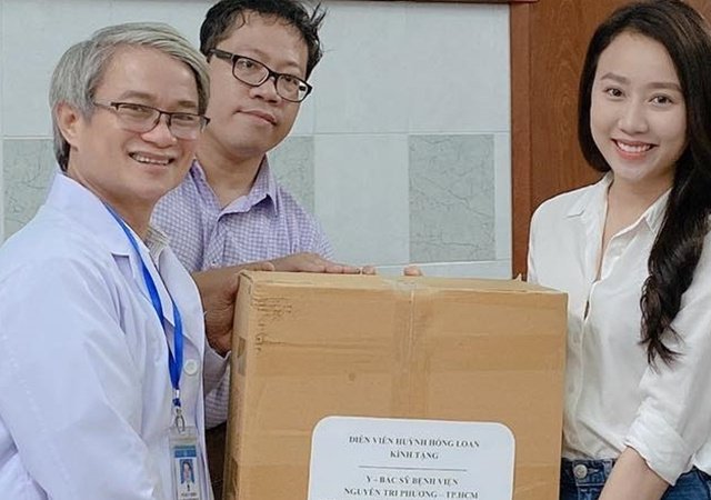Cặp diễn viên, cầu thủ Hồng Loan - Tiến Linh tặng 3.000 khẩu trang cho các bác sĩ, y tá tại bệnh viện.