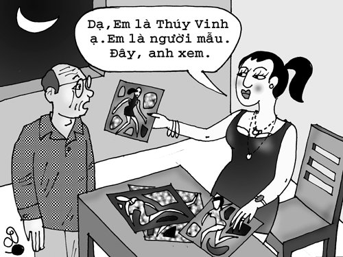 Tối hôm đó, ông Cường vừa ăn cơm xong thì có tiếng chuông cửa. Một cô gái cao ráo, có nét mặt khả ái, ăn mặc thời trang, hở cả đằng trước, đằng sau bước vào.