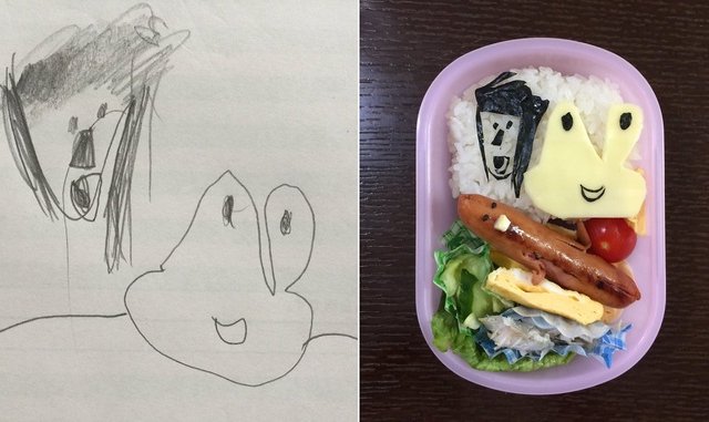 Bố Nhật làm hộp cơm bento theo hình vẽ nguệch ngoạc của con gái