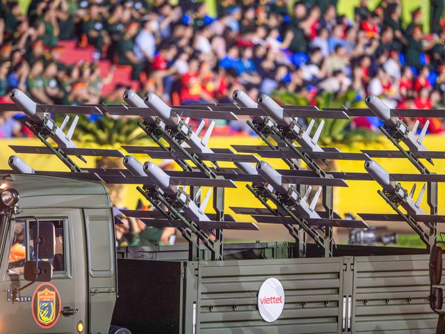 Ba mẫu UAV hiện đại gồm UAV trinh sát, UAV đa năng, UAV cảm tử do Viettel nghiên cứu sản xuất, lần đầu xuất hiện tại buổi tổng hợp luyện A80 tối 21/8.