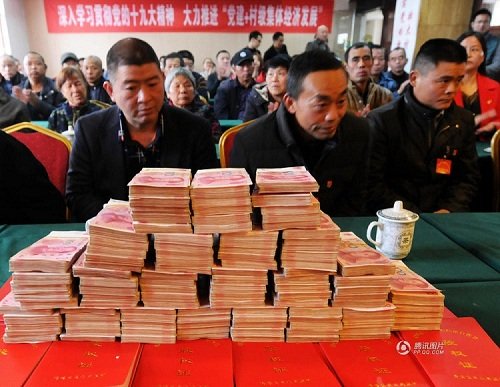 Hơn 700 nông dân tại một thôn ở Trung Quốc được chia tổng cộng 171.000 USD tiền cổ tức trong hai năm.