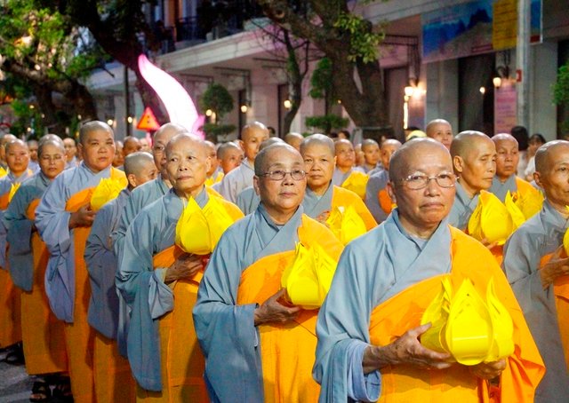 Hàng nghìn tăng ni, phật tử xứ Huế đi bộ 4km rước Phật