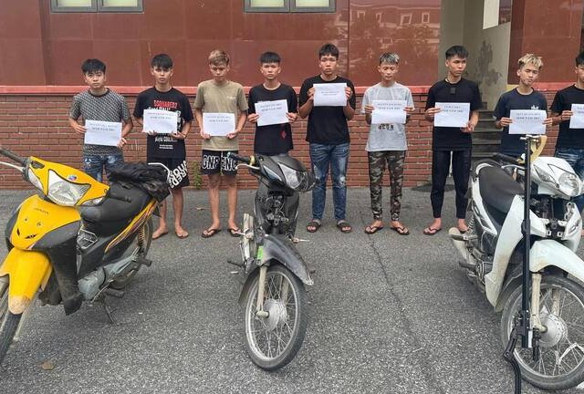 Nhóm 18 thanh thiếu niên ở Nghệ An đi trên 9 xe máy tốc độ cao, mang theo hung khí, vi phạm luật giao thông, đánh đuổi nhau gây rối trật tự công cộng.