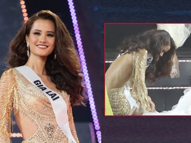 Khi đang trao giải phụ tại chung kết Hoa hậu Hoàn vũ Việt Nam tối 7/12, Hương Ly bất ngờ khuỵu xuống sân khấu và được dìu vào trong cấp cứu.